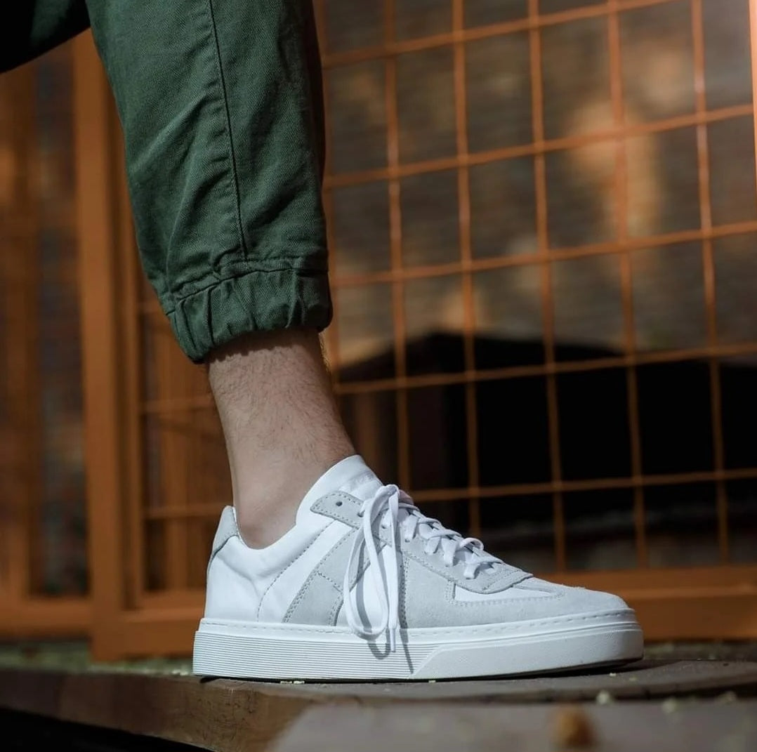 Weiße Sneaker aus hochwertigem Leder für Herren, die durch ihr schlichtes Design und hohem Tragekomfort überzeugen. Diese Schuhe sind vielseitig kombinierbar und bieten optimalen Komfort für den Alltag. Perfekt für Männer, die Stil und Bequemlichkeit schätzen.